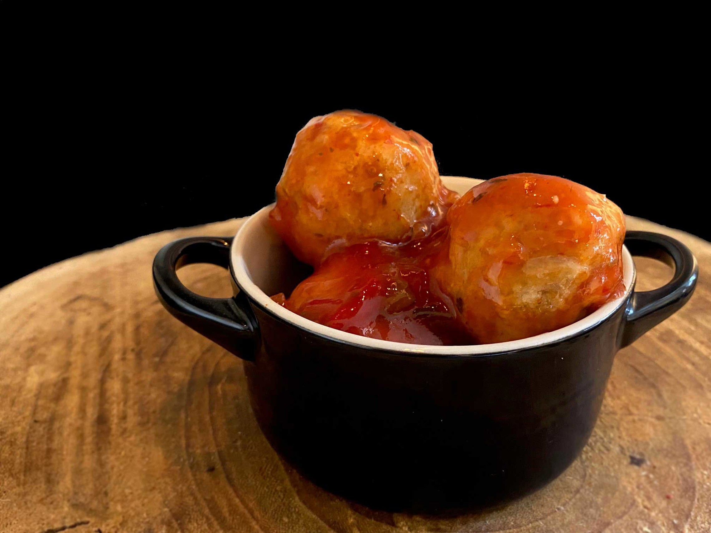Frikadellen van ons beroemde gemengd gehakt, aangevuld met kaas en hesp in een heerlijk afsmakend provençaals zigeunersausje.