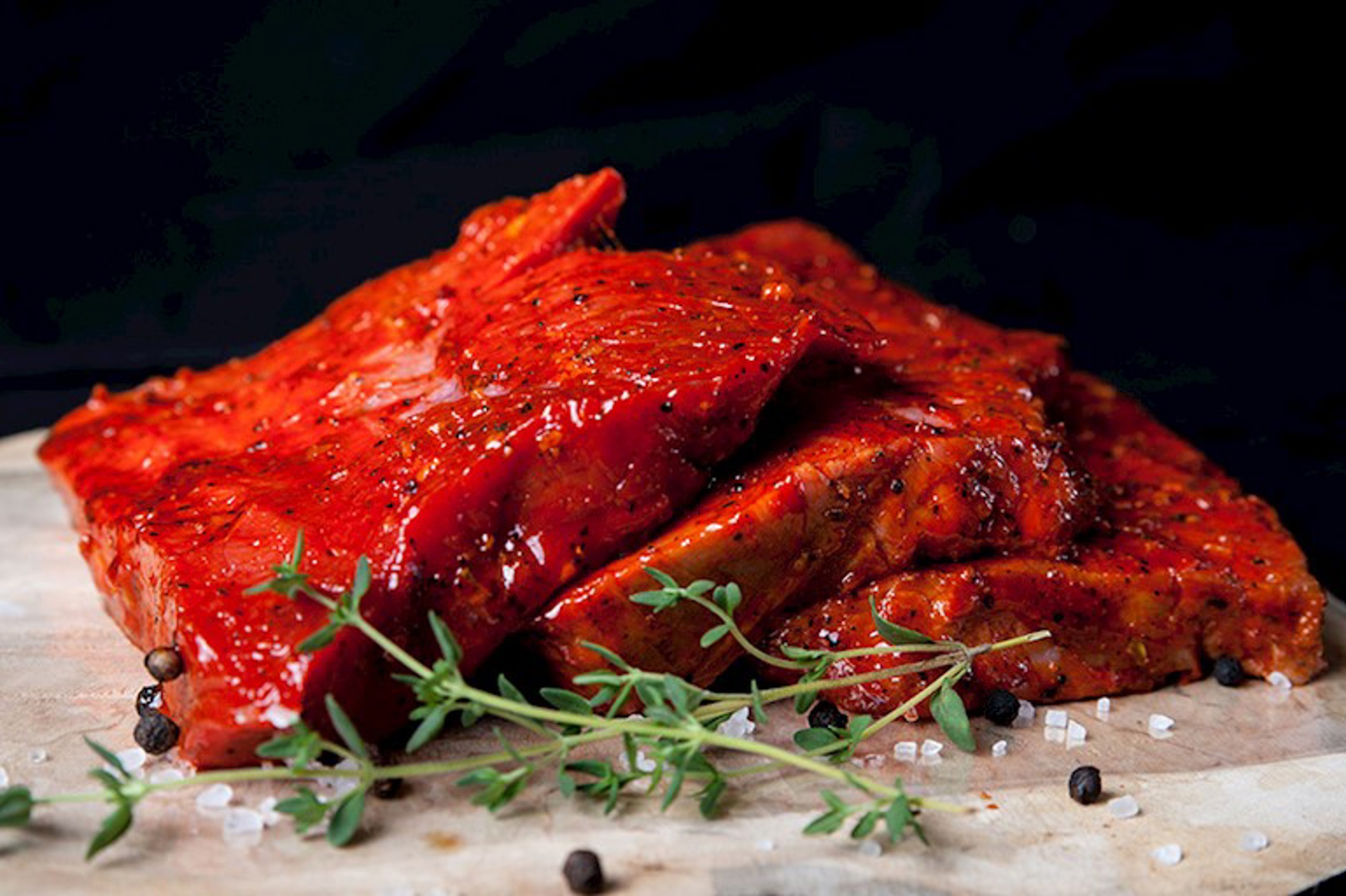 Eerste keus steak van Belgisch wit blauw, gemarineerd met een kruidige marinade.