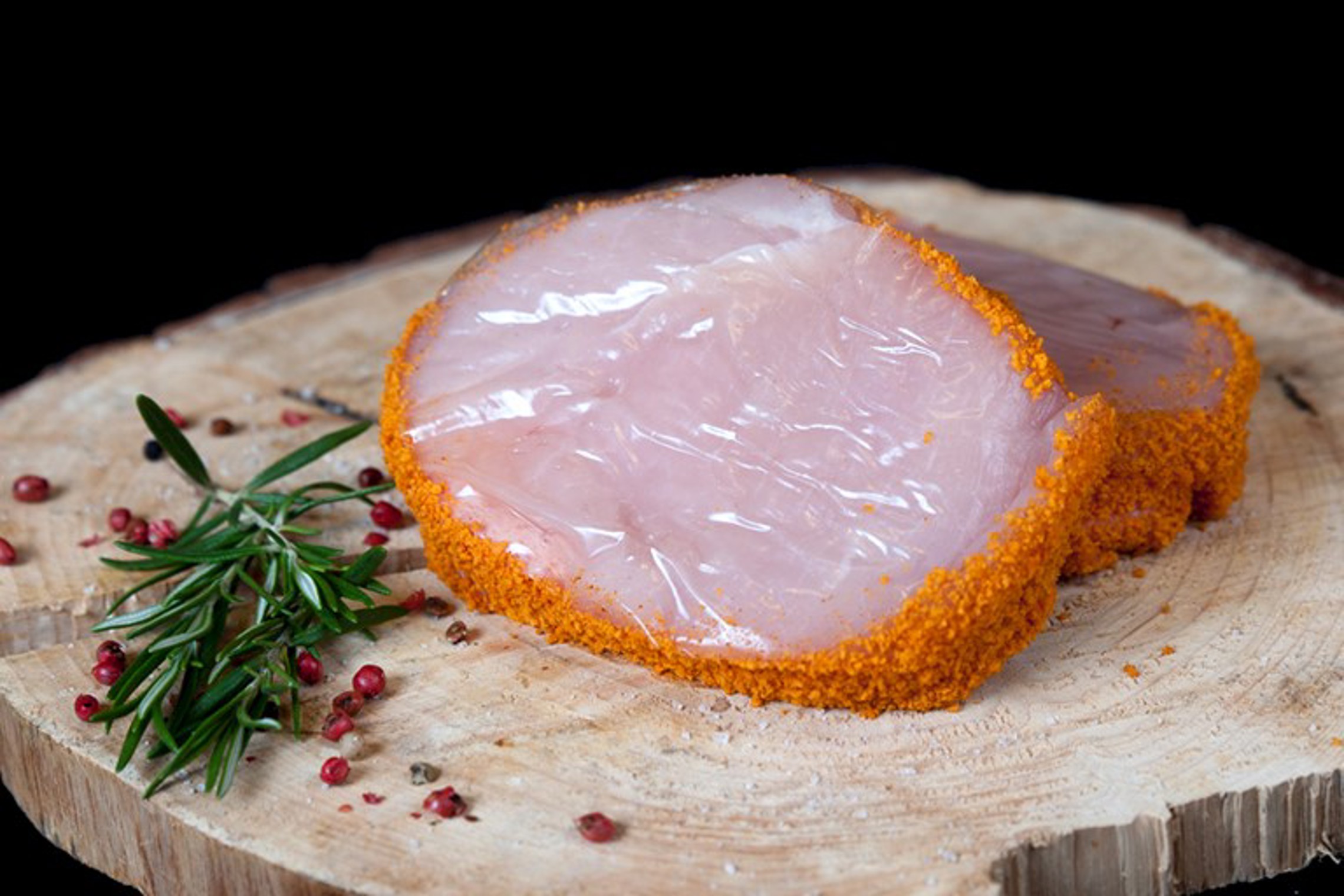Hamburger van kippengehakt, met een topping van verse kipfilet. Afgewerkt met een krokant korstje.