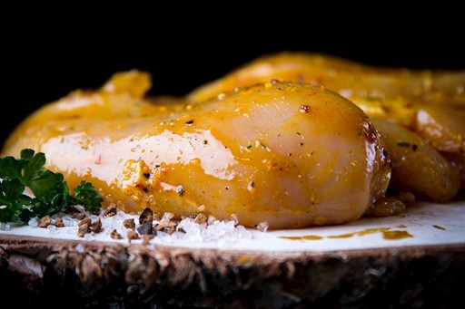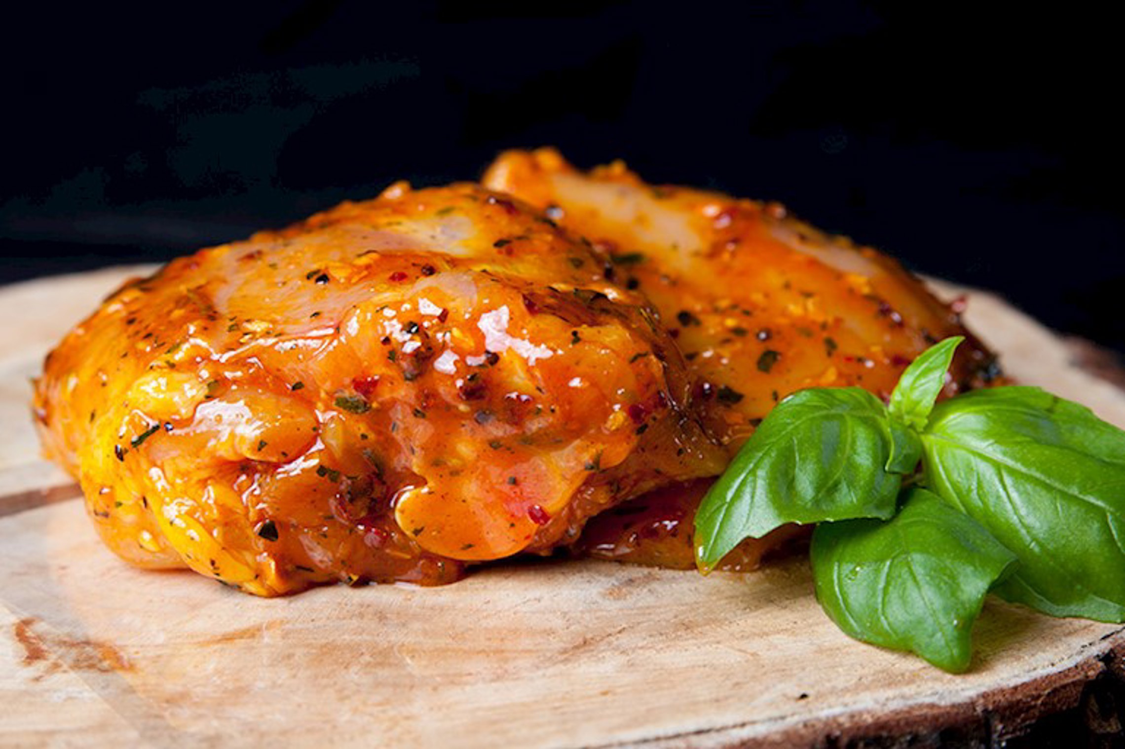 Kipkoteletje in een marinade op basis van koriander, kurkuma, gember, komijn, kardemom en paprika.