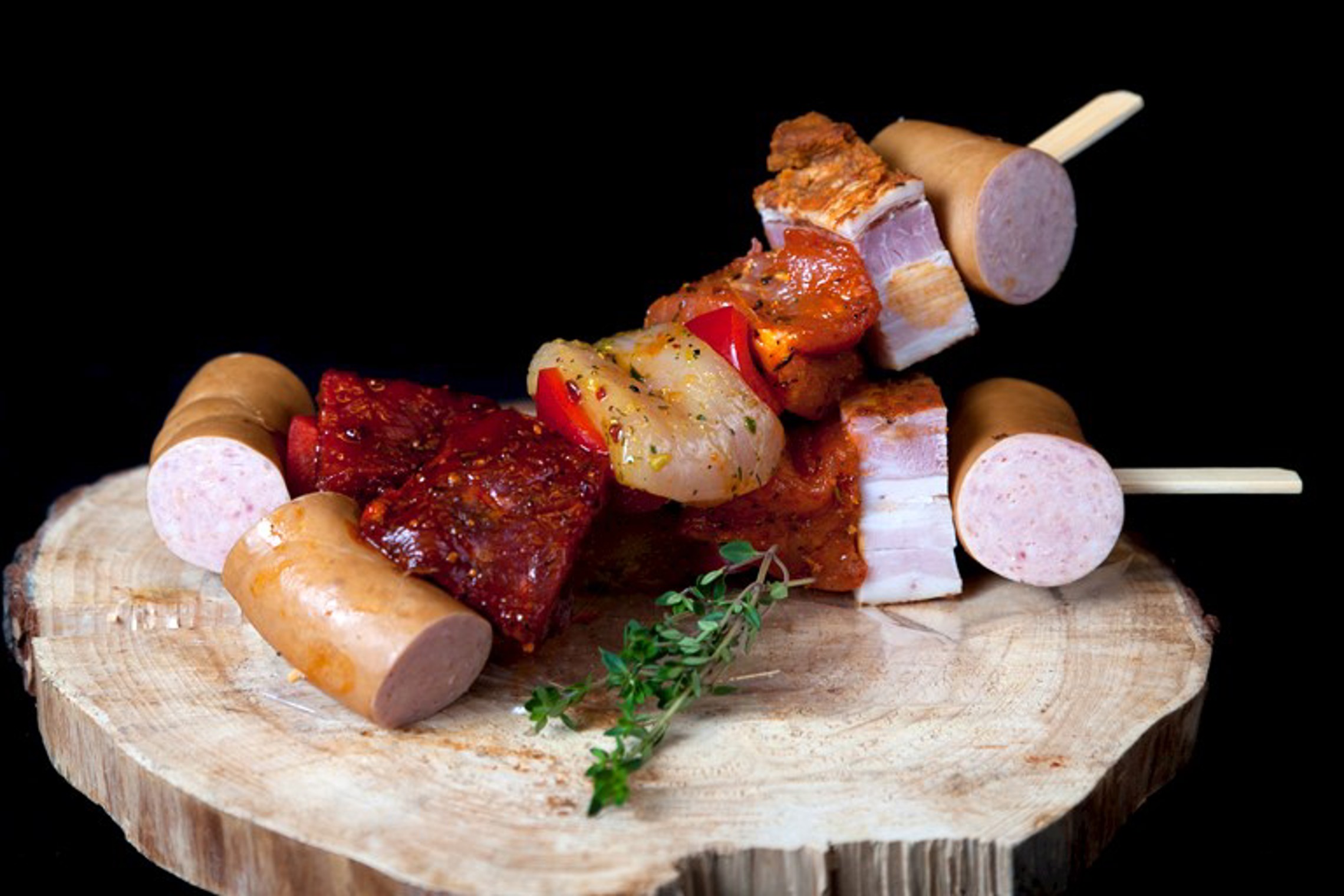 Wil je een beetje vanalles proeven? Dan is dit een aanrader. Een brochette gemaakt van een stukje kip, BBQ worst, varkenshaas, runds en ovengebakken spek.