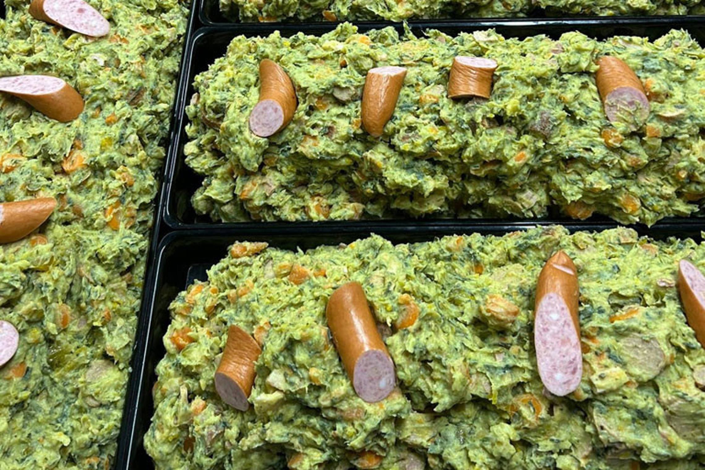 Deze ambachtelijke hutsepot is een hartverwarmend gerecht vol smaak en traditie. Onze romige groentepuree vormt de perfecte basis voor deze rijke combinatie van malse worst, zoete wortelen, verse spruitjes en traag gegaard spek.