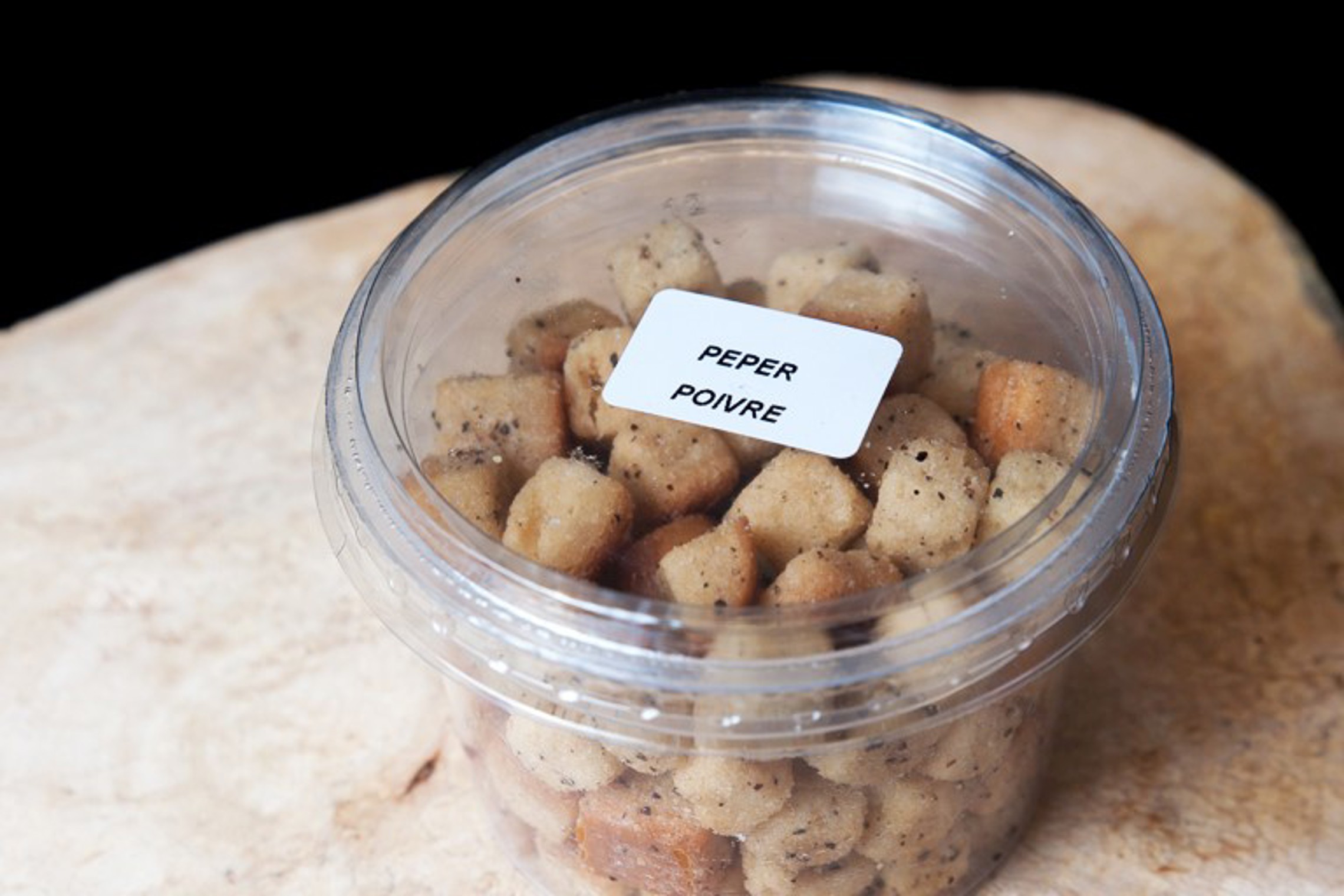 Lekker genieten van knapperige korstjes met een pittige pepertoets in je soep of over je salade.