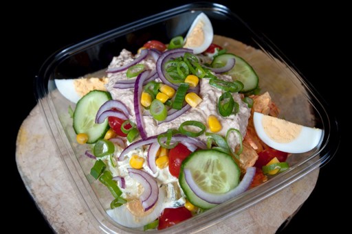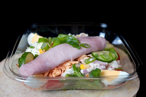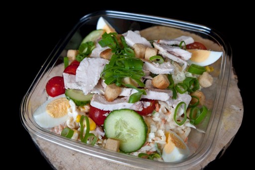 Een fijne koude schotel met supermalse stukken kipfilet, sla, mais, worteltjes, ei, tomaat, komkommer. Afgewerkt met een lekker cocktailsausje en croutons.