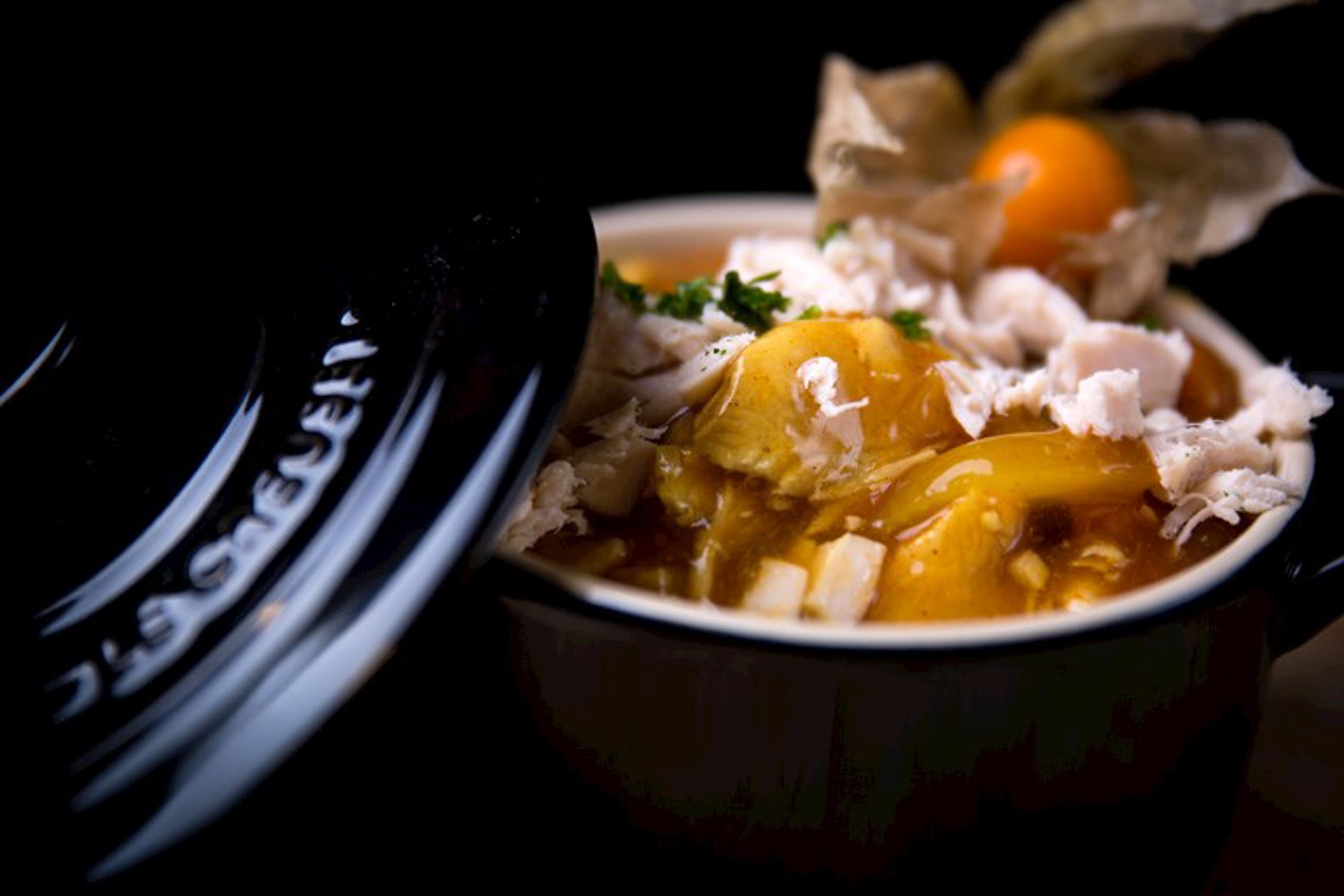 Gekookte kipfilet in een zoetzuur sausje met Oosterse groentjes.