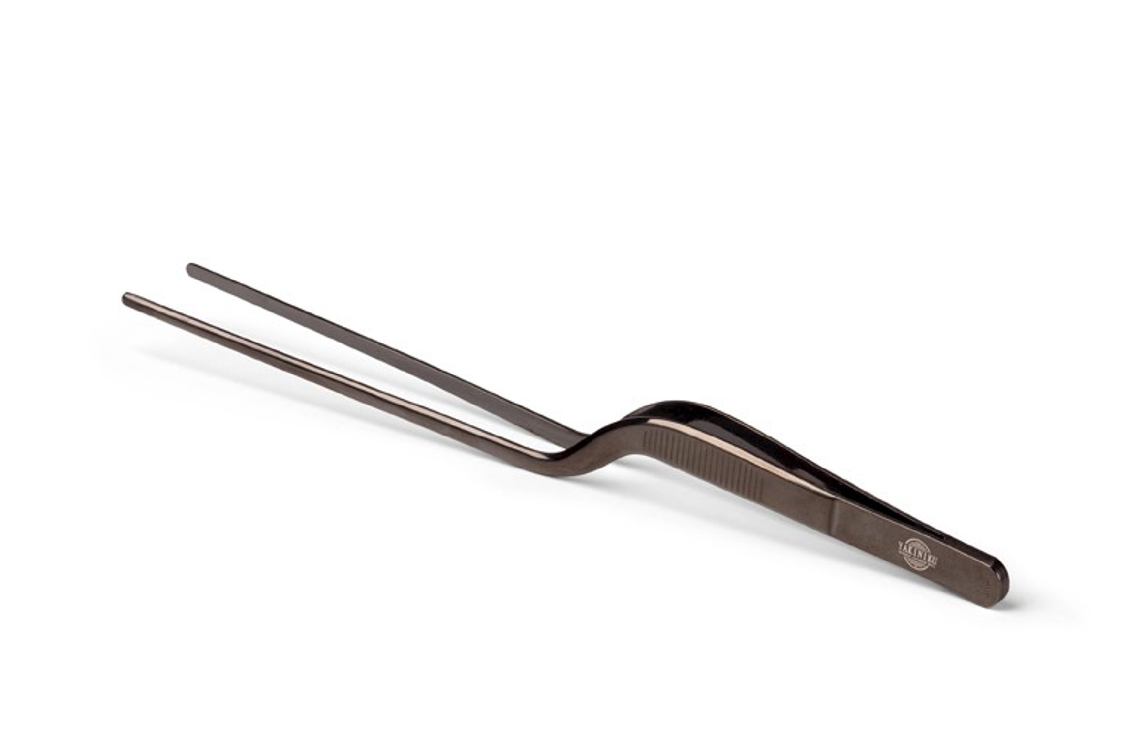 Voor het rauwe vlees op de grill te leggen hebben we een rechte pincet. Dit om kruisbesmetting van rauw en gegaard vlees te vermijden.