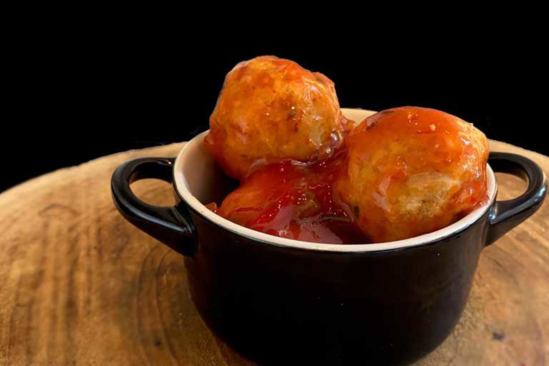 Frikadellen van ons beroemde gemengd gehakt, aangevuld met kaas en hesp in een heerlijk afsmakend provençaals zigeunersausje.
